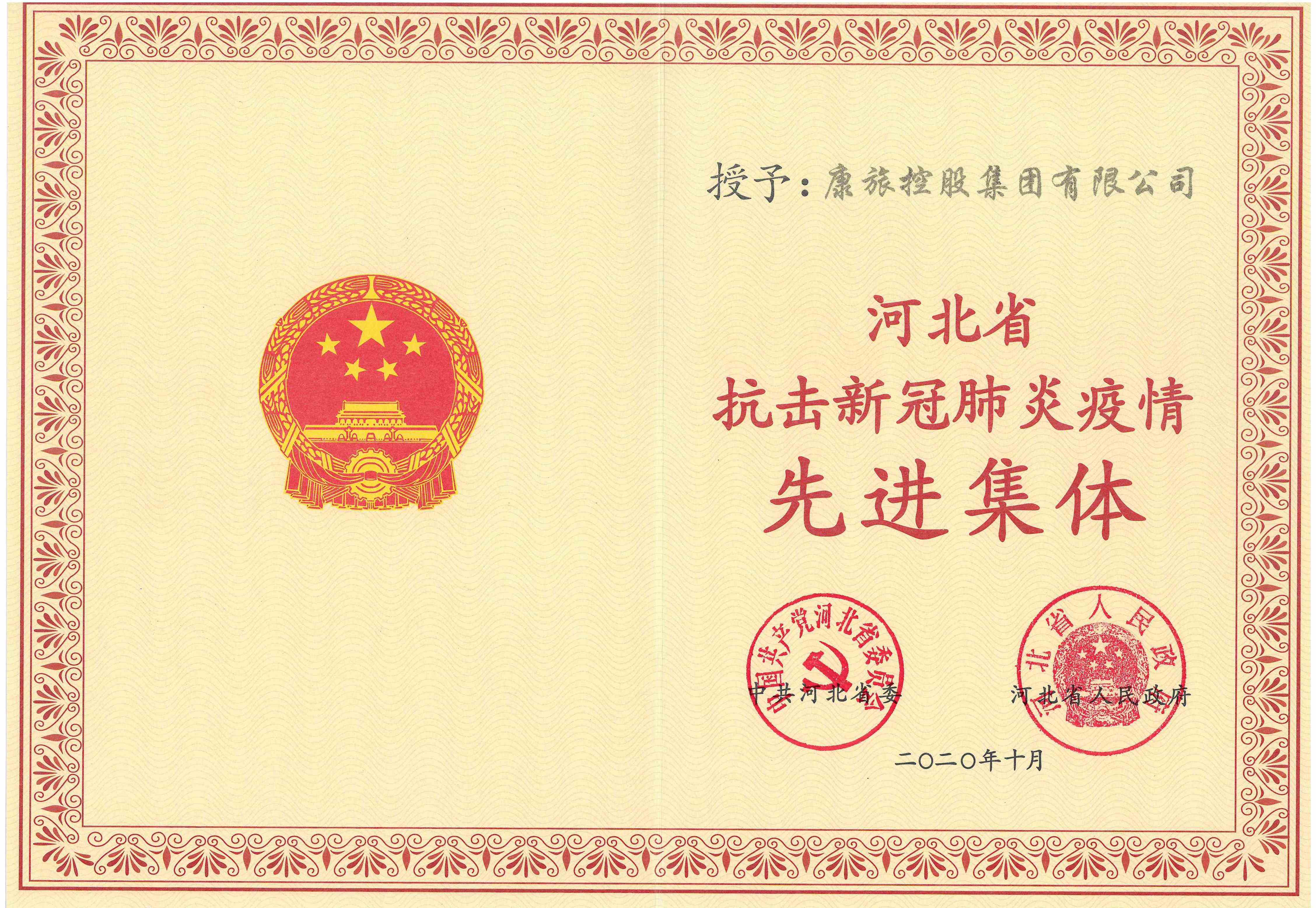 河北省抗擊新冠肺炎疫情先進集體
