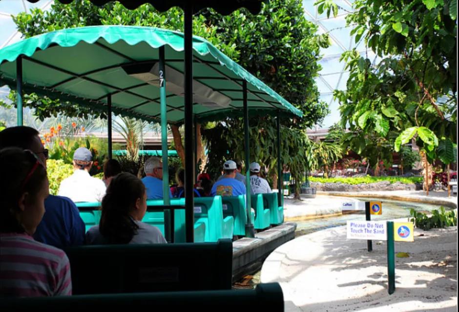 坐小船在溫室里環(huán)游,了解農(nóng)業(yè)的未來發(fā)展。整個(gè)過程大致介紹了美國(guó)農(nóng)業(yè)的發(fā)展階段;進(jìn)入實(shí)物區(qū),可以看到一些水生物和糧食作物的生長(zhǎng)過程,還有超大南瓜,青椒,長(zhǎng)在樹上的西紅柿和黃瓜,熱帶的咖啡樹、芭蕉、火龍果等。讓游客在全新的體驗(yàn)方式中深入了解美國(guó)的農(nóng)業(yè)發(fā)展。