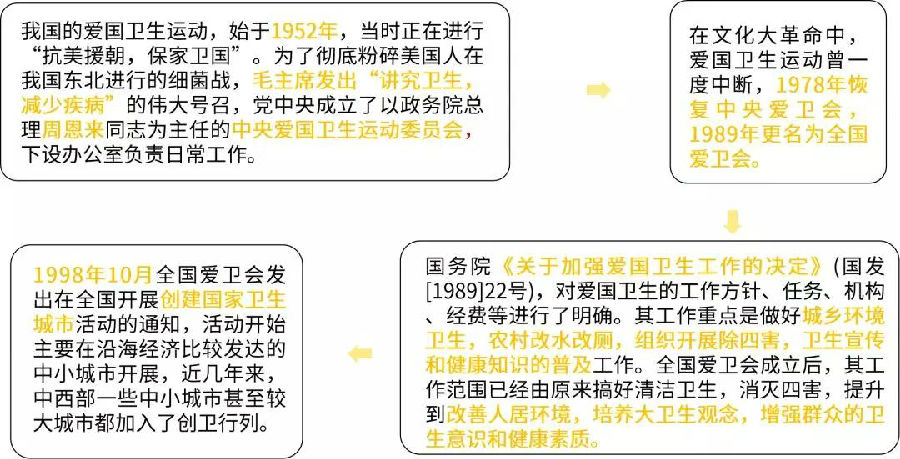 1989年10月,全國愛國衛(wèi)生運動委員會為貫徹《國務(wù)院關(guān)于加強(qiáng)愛國衛(wèi)生工作的決定》,改善城市衛(wèi)生面貌,提高人民健康水平,在全國開展了衛(wèi)生城市檢查評比活動,拉開了創(chuàng)衛(wèi)序幕。
