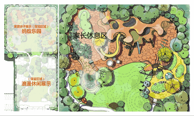 “牧兮親子”在樂園的中心地區(qū),設(shè)計了一個放大螞蟻洞穴的多功能場景,整個外觀就是一個巨大的螞蟻洞穴,孩子們可以在里面捉迷藏,做游戲。螞蟻洞穴與外部有兩個大型滑梯,起到聯(lián)系內(nèi)外部的作用。