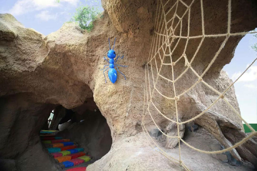 在螞蟻洞穴的墻壁上,也設(shè)置了可以讓兒童用來攀爬的攀巖設(shè)施。在保證安全性的同時也使得游戲內(nèi)容豐富多樣且形象化。