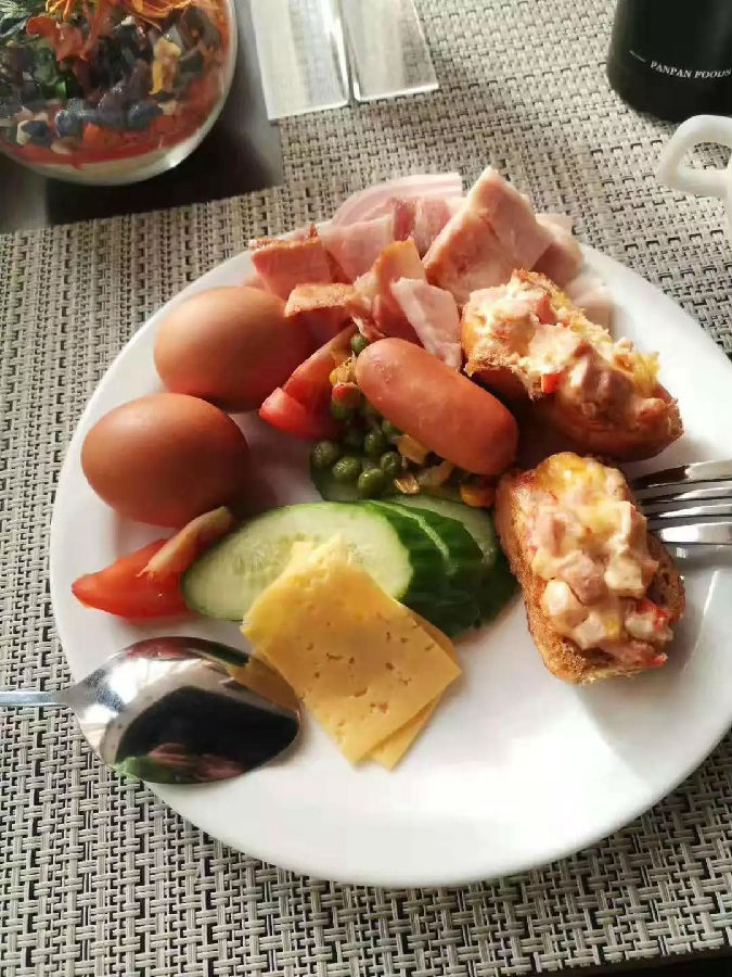 第二天起來,酒店自助還不錯(cuò)!各種吃的、喝的、看的讓人眼花繚亂,烤肉、火腿、培根、沙拉、咖啡、列巴、奶酪、黃油------各種好吃的,好吃不好吃?那你得親自來嘗一嘗了!