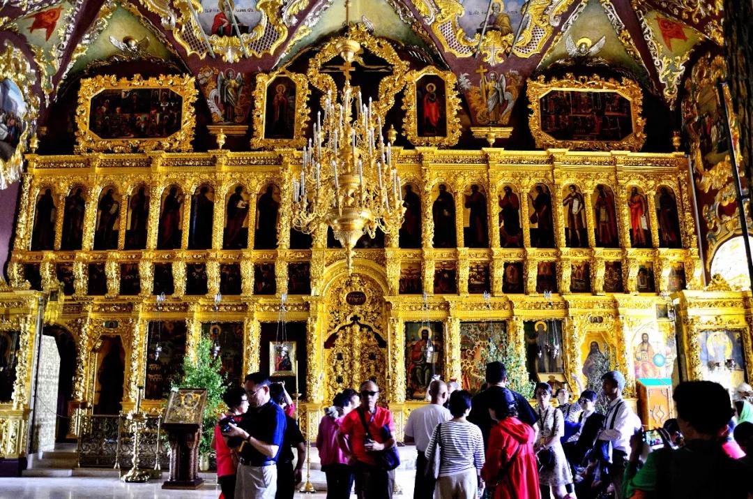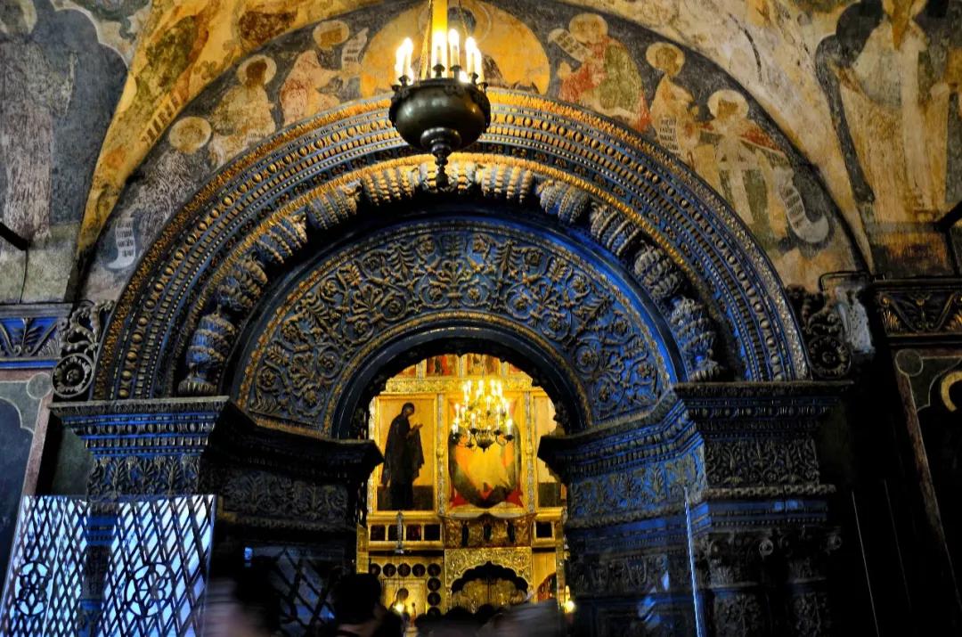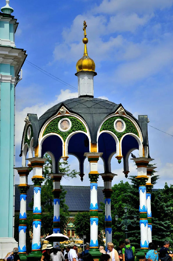 這里是一座美麗如童話般的建筑群:塔尖直指蒼穹代表著虔誠與忠貞,鐘樓高聳入云卻又精雕細(xì)琢,壁畫色彩濃郁極具視覺沖擊力,哪怕是一個(gè)小亭子從頭到腳處處可見匠心。你想象不出性格彪悍的俄羅斯粗漢子,怎么偏偏像個(gè)巧妹子,鼓搗出這么精美的東西!