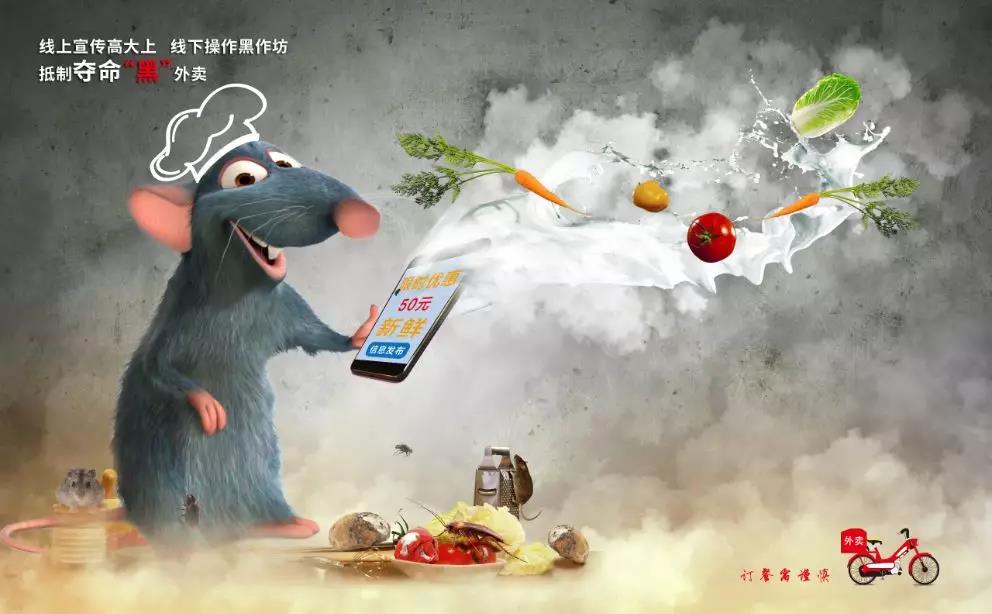 現(xiàn)實中,有些“高大上”的美食,在朋友圈和“餓了么”“美團”等網絡訂餐平臺好評如潮的“美食店”,卻是無證無照、污水橫流、油污滿地的“老鼠蒼蠅館子”。我們要鏟除這些黑心外賣,綠化我們的訂餐平臺。