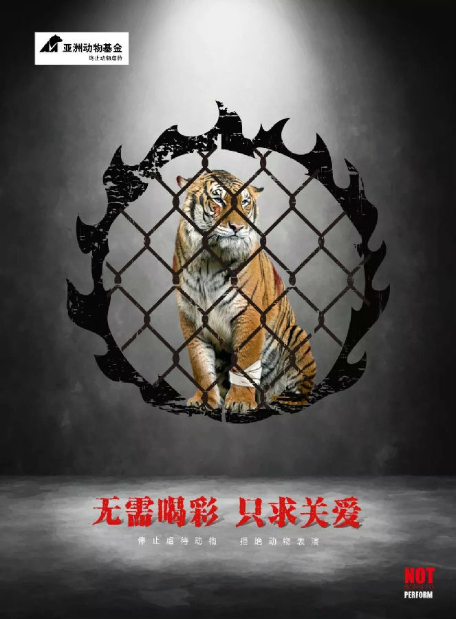 甘地說過,“一個民族的偉大與其道德上的進步程度,可以從他如何對待動物來判斷?!彪S著生活水平的提高,馬戲也成為了一種消遣放松的方式。但是馬戲團的表演看似歡樂但是其背后的故事又有多少人知道?虐待動物的事件是經常發(fā)生的,表演動物受不到合法的保護。本作品從虎、熊、象三種動物及其表演的工具為出發(fā)點進行創(chuàng)作,它們滿身的傷痕,朝夕相處的表演工具對于它們,早已是禁錮他們天性的牢籠。作品呼吁保護動物、拒絕表演,不要把一時欣賞的快樂建立在動物們的痛苦之上。