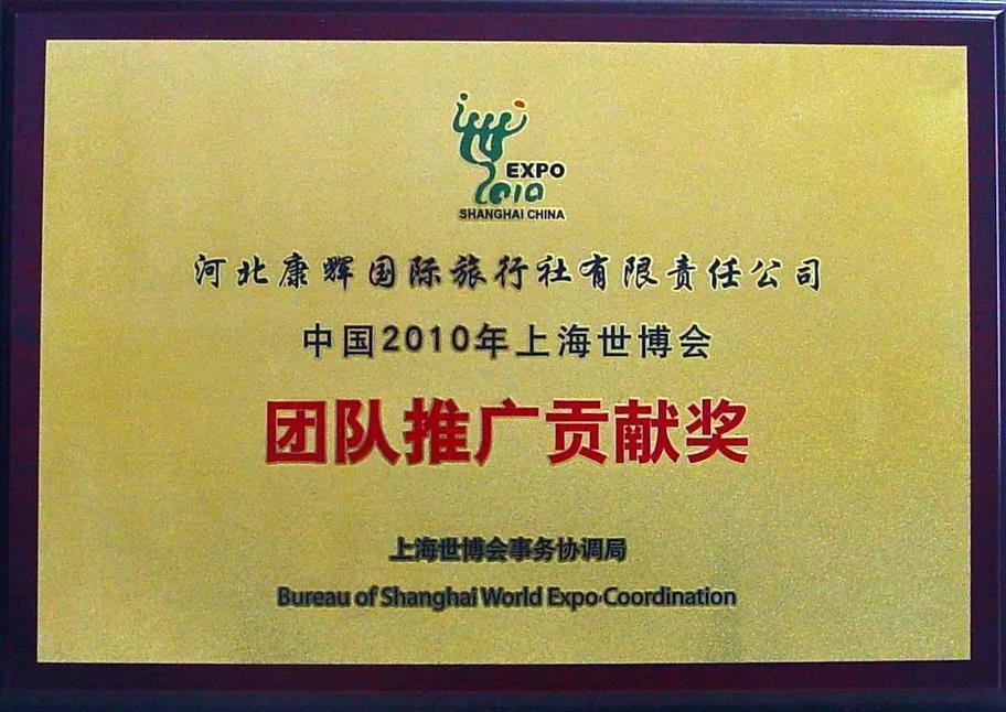榮獲2010上海世博會(huì)團(tuán)隊(duì)推廣貢獻(xiàn)獎(jiǎng)