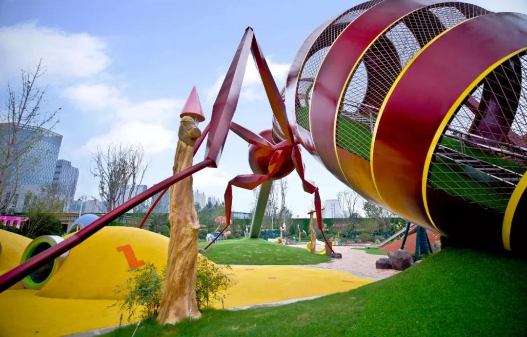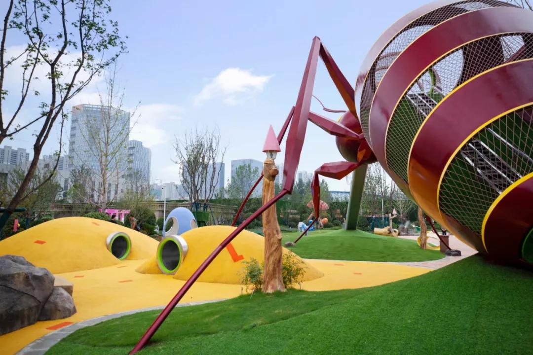 牧兮親子樂園總共場地設(shè)計了35只螞蟻的生活形態(tài),為了強調(diào)螞蟻的群體結(jié)構(gòu),針對兒童成長的特點,有意放大了螞蟻王,同時融入了科技與大齡兒童的冒險、探索、娛樂的精神。