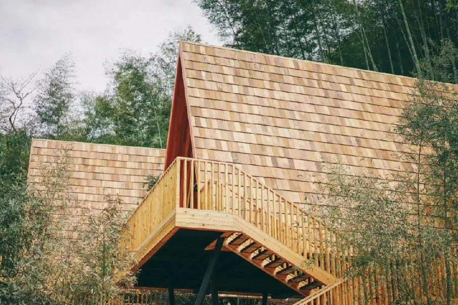 為了呈現(xiàn)完美的樹蛙部落,對環(huán)境的干擾降低到最小,通過全原木材質(zhì)拉近與森林的距離。