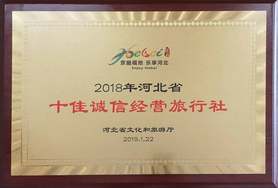 榮獲2018年河北省十佳誠信經(jīng)營旅行社